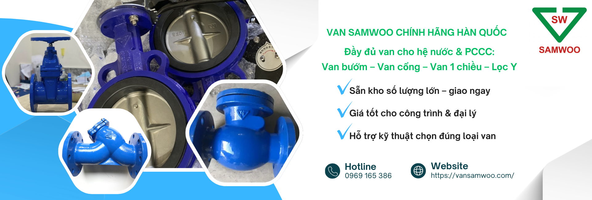 Van Samwoo là dòng van công nghiệp đến từ Samwoo Valve Co., Ltd. (Hàn Quốc), được sử dụng phổ biến trong các hệ thống cấp thoát nước, PCCC, HVAC và nhà máy công nghiệp. Sản phẩm của Samwoo nổi bật nhờ chất lượng ổn định, độ bền cao và giá thành hợp lý so với các thương hiệu châu Âu.